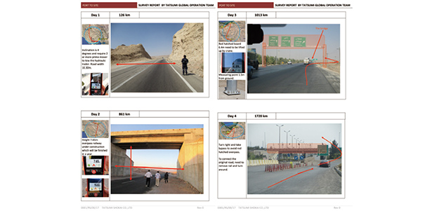 現場主義の徹底は、プロジェクト遂行力の差にも表れます。最適・確実な輸送を確保するために、各国の通関事情や港の慣習に精通し、あらゆる貨物の特性を熟知することはもとより、事前に現地を訪れ、全輸送ルートを徹底して調査しリスク分析・技術検証を行い、時には障害物撤去や新たな道を建造するなどして、安全輸送の実現に全精力を注いでいます。万が一のトラブル時も、現場経験が豊富な人材が現地で臨機応変にアイデアを出し、納期を遵守する遂行力が顧客からの厚い信頼へとつながっています。