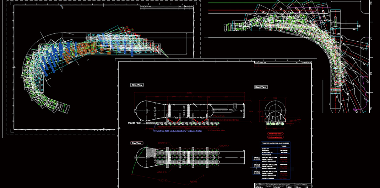 輸送技術は、日々、進化しています。社内では、お客様に効率的かつ最適なプラント輸送をご提案するため、物流の現場を知るスタッフが経験やノウハウを共有し、高め合います。案件内のチームプレーはもちろん、最先端の技術や輸送形態を研究しいち早く採り入れます。近年トレンドのモジュール輸送にも柔軟に対応し、アメリカやオーストラリアなどレイバーコストの高い国々での建設コストの削減に貢献しています。